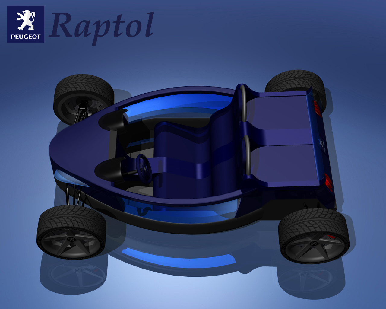 2006, premier essai de modélisation d'une voiture, à l'occasion du concours de design Peugeot ayant comme thème de créer un véhicule léger et écologique destiné au plaisir de conduire. La Raptol était un projet basique, animé par un petit moteur à ethanol, couplé à une hybridation pour améliorer les accélérations.