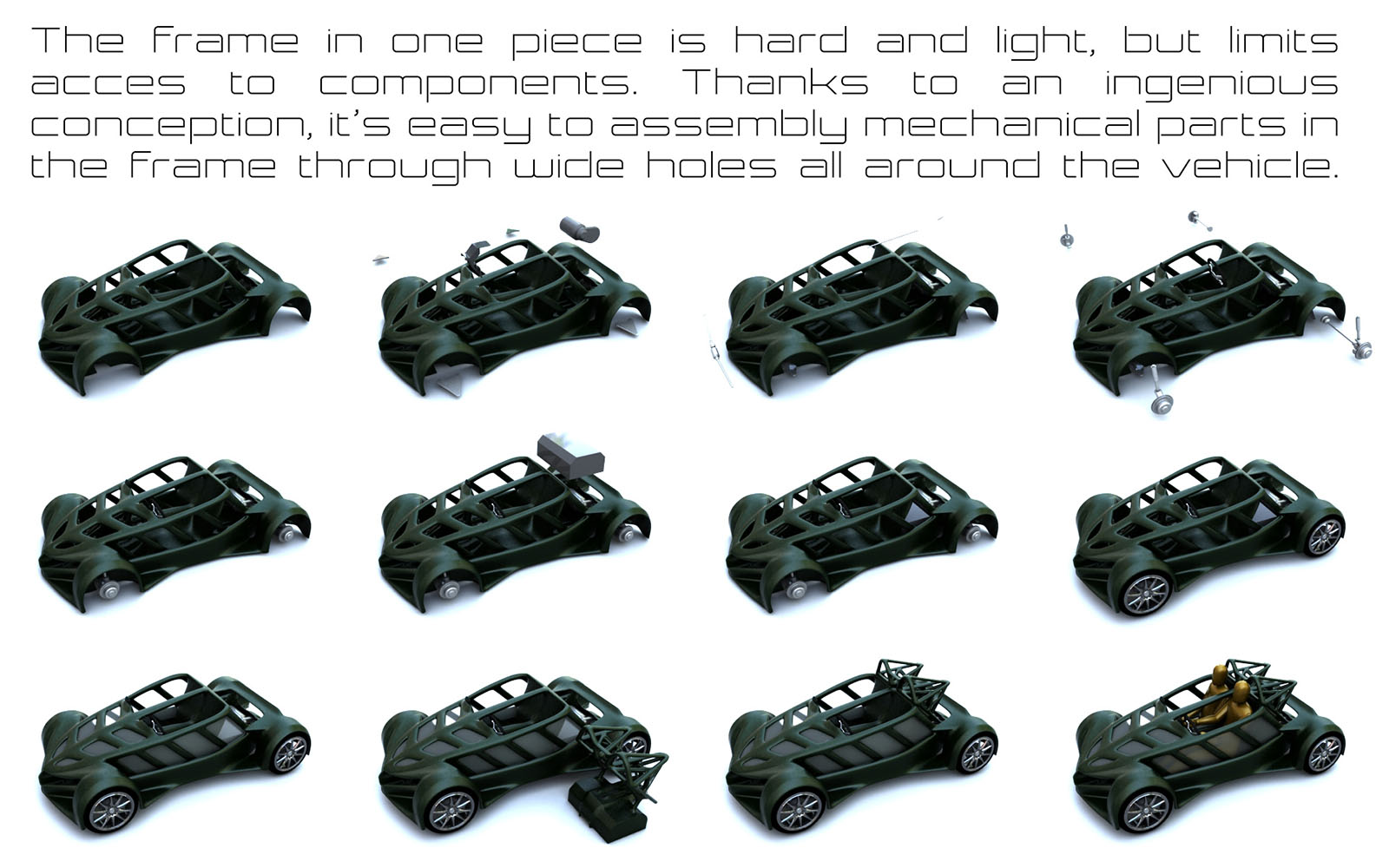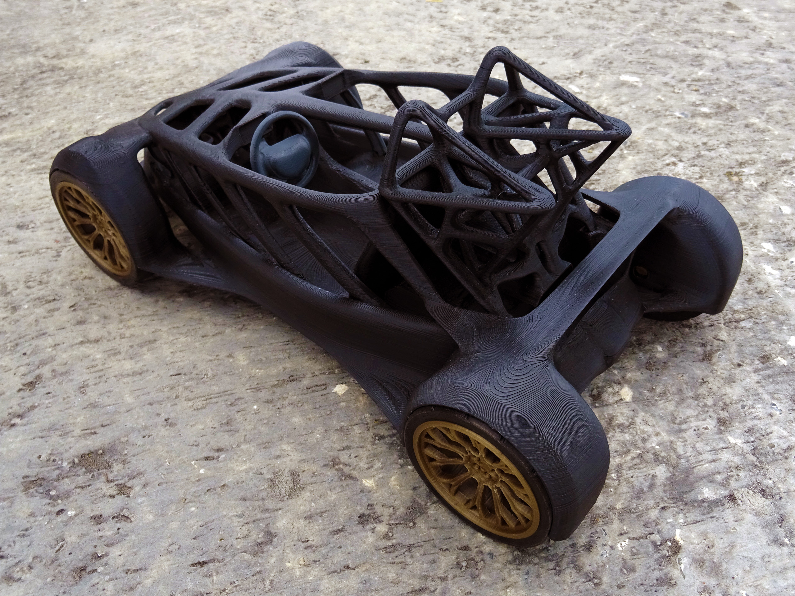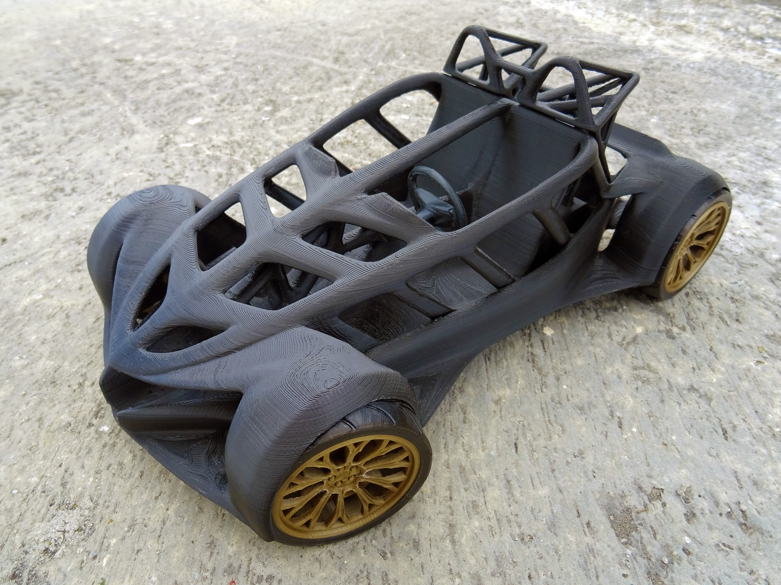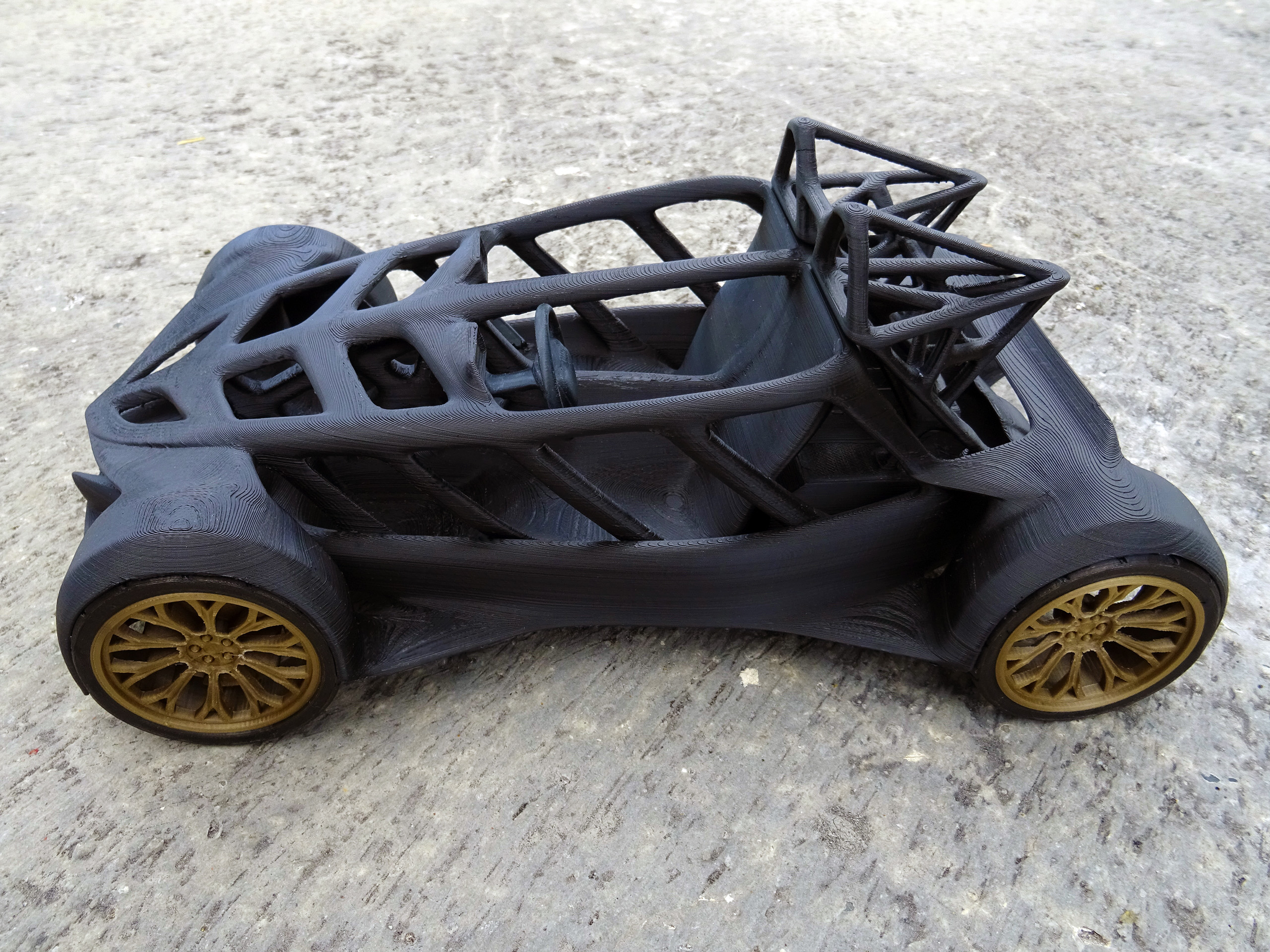 Projet de voiture imprimée en 3D, réalisé en 2014 pour le concours remporté par la Strati. L'objectif était de créer une voiture imprimable en 3D, dans laquelle sera placée la chaine de traction d'un Renault Twizy.